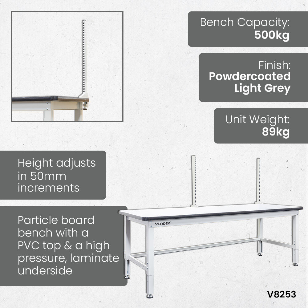• Our 2400mm Heavy Duty Modular Ergonomic Workbench comes with a back panel with 2 uprights and feature height adjustable legs for all your requirements or applications.