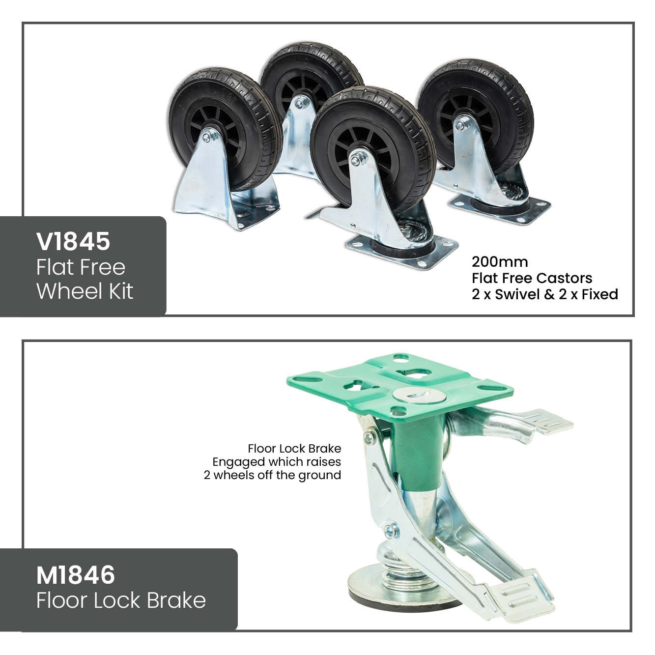 • Optional 200mm Pneumatic Wheel Kit with Floor Lock