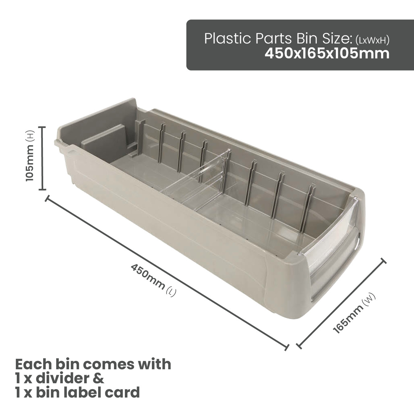 • Plastic Parts Bin size (LxWxH): 450x165x105mm