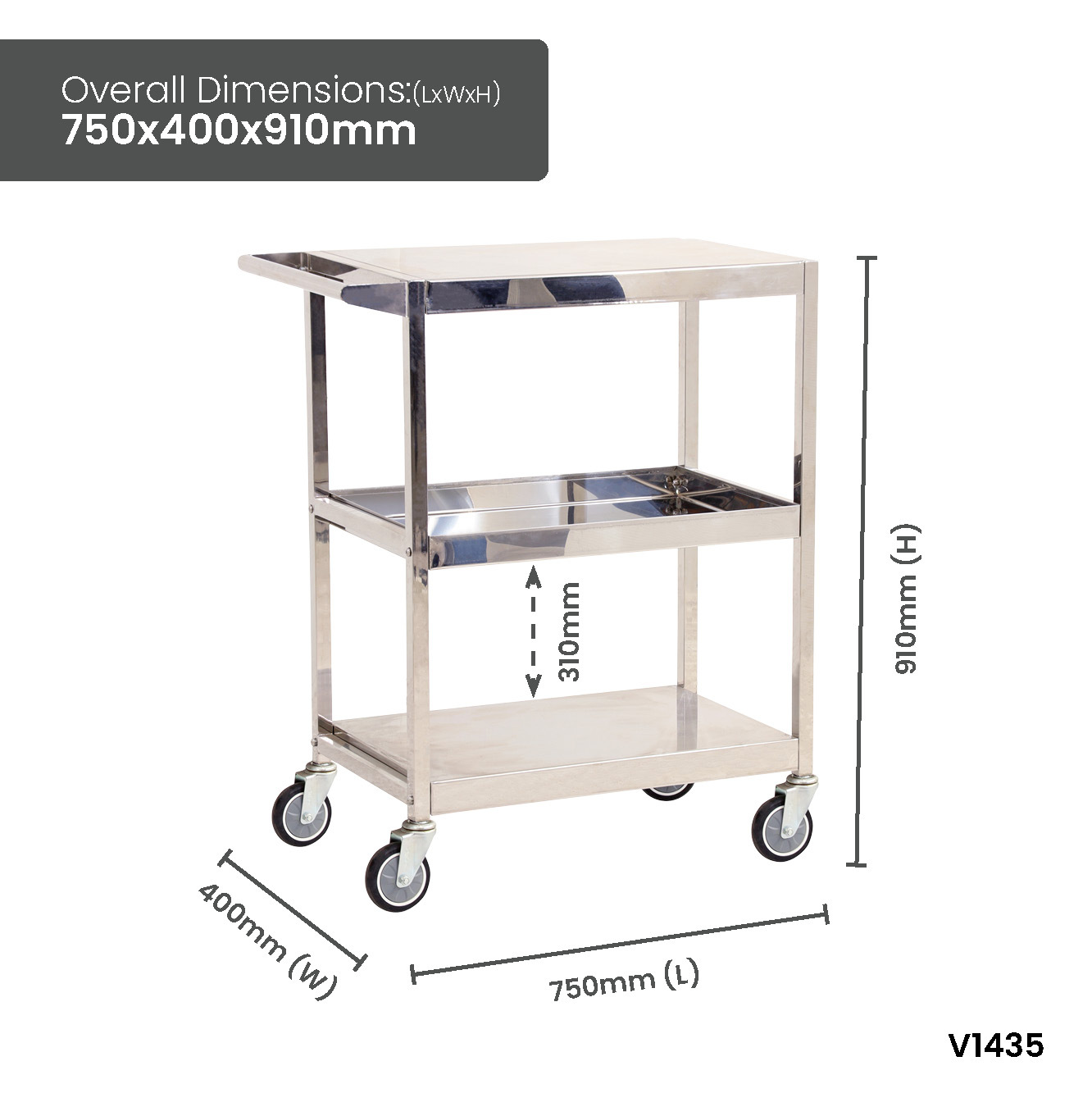 • Heavy duty stainless steel 2 and 3 tier trolleys which are great for use in hospitality areas.