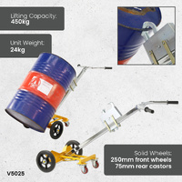 • This trolley is also self-standing which means the operator can leave without drums falling over