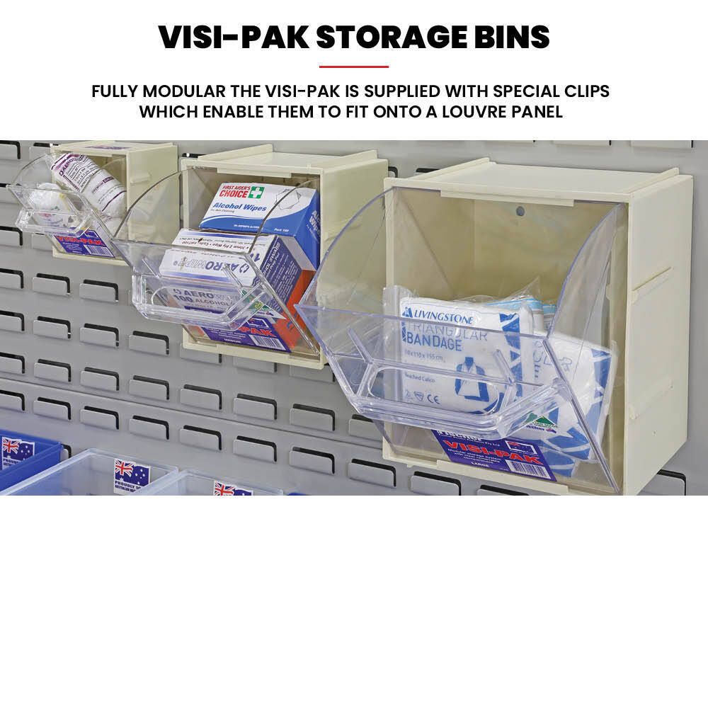 • Fully modular the Visi-Pak is supplied with special clips which enable them to fit onto a louvre panel - doors swivel forward for easy access